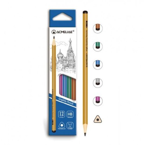 Олівець чорнографітний Acmeliae Металік, HB, трикутний корпус, 2.2 мм, 12 шт.