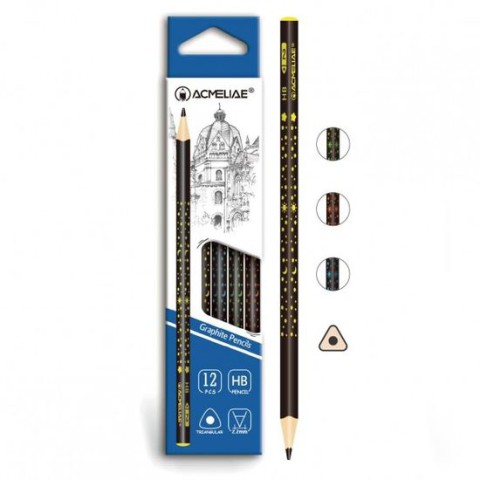 Олівець графітовий Acmeliae Зірочки, HB, трикутний корпус, 2.2 мм, 12 шт. — Набір із 12 графітових олівців Acmeliae із дизайном зірочок, твердістю HB і трикутним корпусом. Діаметр грифеля 2.2 мм, ідеально для письма і малювання. Безпечні, сприяють розвитку моторики. Чудовий вибір для учнів! Замовляйте на Demsky.com.ua!