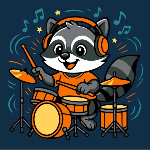 Картина за номерами дитяча Єнот з барабанами Ideyka 25×25 см КНО1310