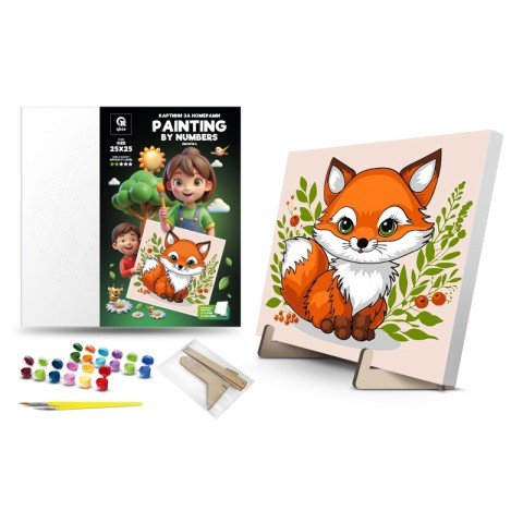Картина за номерами Qbee Лисичка з дерев’яною підставкою 25×25 см QB900-066/QB901-066