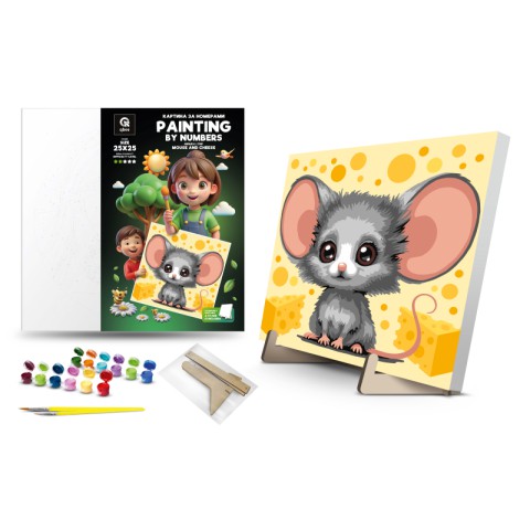 Картина за номерами Qbee Мишка і Сир з дерев’яною підставкою 25×25 см QB900-077