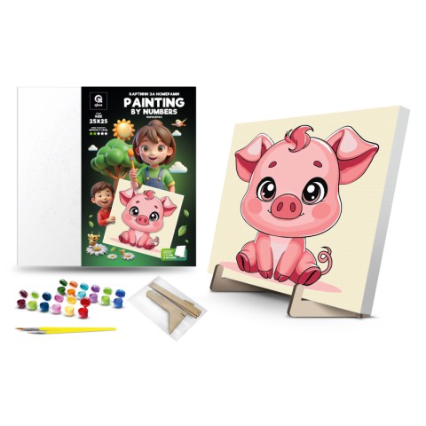 Картина за номерами Qbee Поросятко з дерев’яною підставкою 25×25 см QB900-014