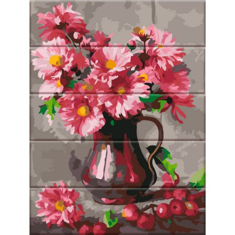 Картина за номерами по дереву "Хризантеми" ASW045 30х40 см
