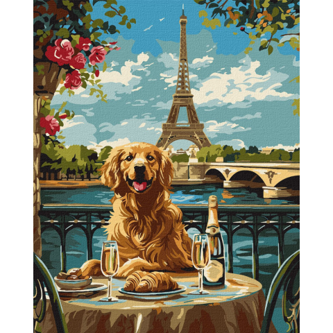 Картина за номерами "Ретривер у Парижі" Ідейка KHO6627 40х50 см