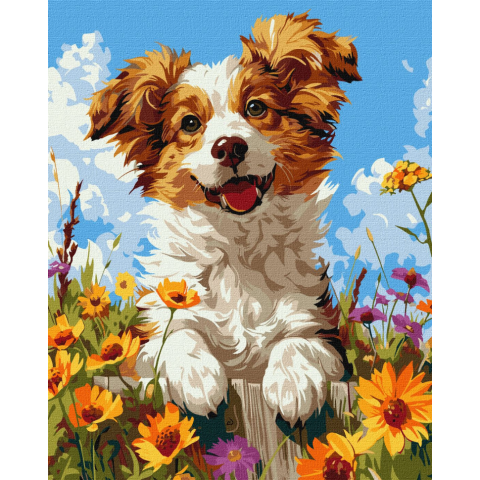 Картина за номерами "Собака у квітах" Ідейка KHO6624 40х50 см