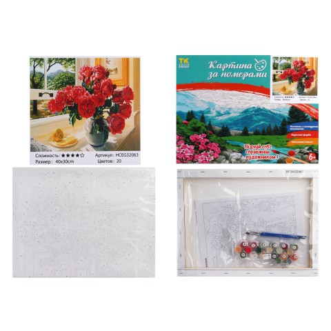 Набір для розпису по номерах Червоні рози, TK Group, 40x30 см, 32063