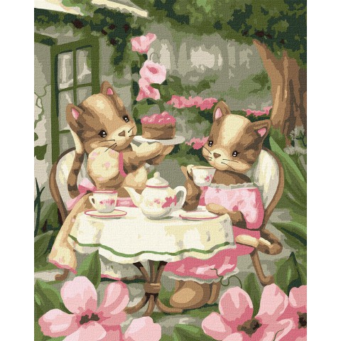 Набір для розпису по номерах 7+ Чаювання подружок, 40x50 см, КНО2415