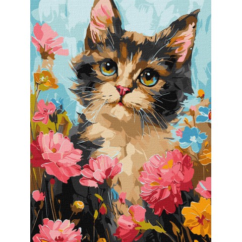 Набір для розпису по номерах Пухнастик у квітах, 30x40 см, КНО6600