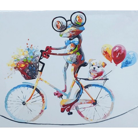 Набір для розпису по номерах Яскраве жабеня на велосипеді, Strateg, 40x50 см, GS078