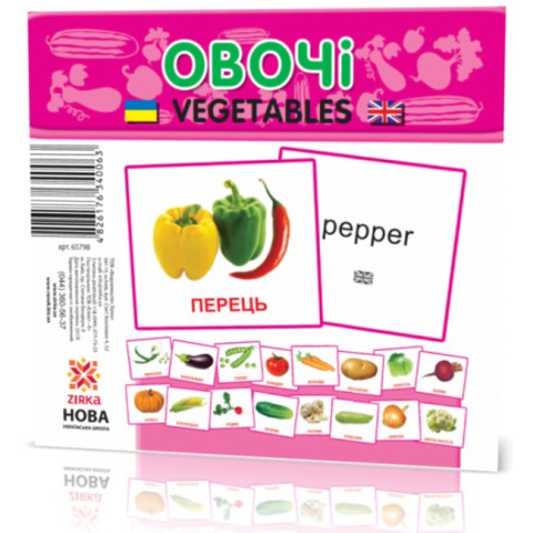Картки міні Овочі, 110x110 мм (українською), 28.5 - Вивчайте овочі з міні-картками "Овочі" (110x110 мм, 28.5 шт. (українською))! Для дітей від 2 років, ці картки розвивають уяву та пізнавальні навички через інтерактивне навчання. Безпечні та яскраві, вони ідеальні для юних гурманів. Пориньте у світ овочів на Demsky.com.ua!