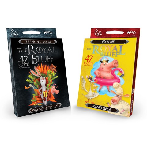 Карткова гра The ROYAL BLUFF (російською), Danko Toys - Весела карткова гра "The ROYAL BLUFF" (російська, Danko Toys)! Для дітей від 5 років, ця гра розвиває логіку та соціальні навички через захоплюючі завдання. Безпечна та яскрава, вона ідеальна для сімейних ігор, але російськомовна. Змагайтеся з друзями на Demsky.com.ua!