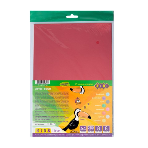 Картон фольгований А4, 8 кольорів, 8 аркушів