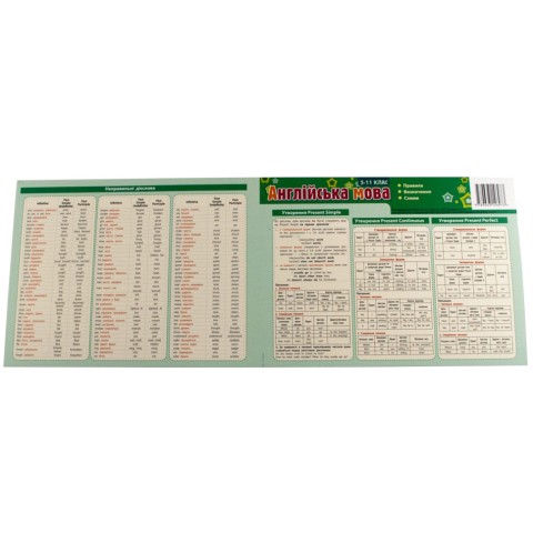 Картонка-підказка містить основні правила, визначення та схеми з англійської мови. Вона стане незамінним помічником для учнів 5-11 класів на уроках і вдома.