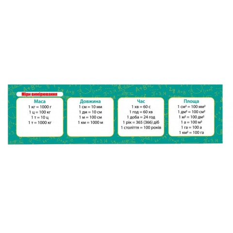 Картонна закладка-шпаргалка Заходи вимірювання 147915 для учнів 1-5 класів