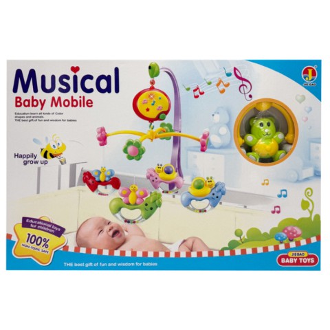 Мобіль складається з чотирьох іграшок, які кріпляться за допомогою мотузок і колишуться в повітрі. Карусель виконана в ніжних, не дратівливих кольорах, а завдяки музичному та світловому супроводу буде ще більше привертати увагу дитини.