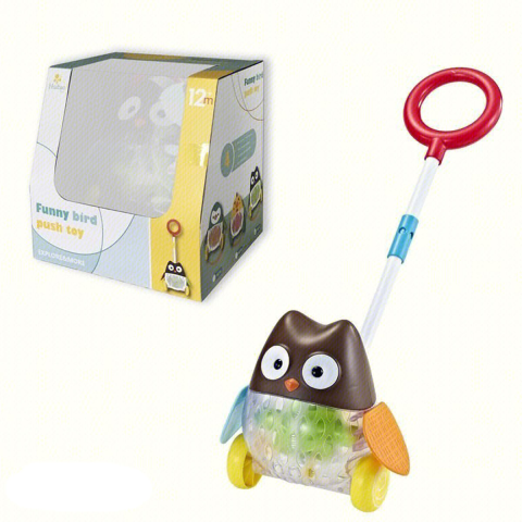 Каталка на палиці, 48 см, світло, підвісні крила, 3 види (пінгвін, каченя, сова), на батарейках, 21x21 см