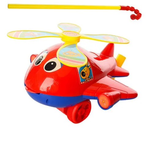 Каталка Вертоліт на палиці буде цікава діткам, які тільки навчилися ходити або ходять давно. Каталочка яскрава і привертає малюка. Розмір 41см. Вертоліт зі звуком, при русі обертаються гвинти і висовується язик.