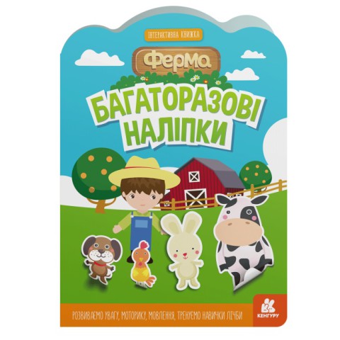Багаторазові наліпки, Кенгуру, Ферма (українською) - Відчуйте фермерське життя з багаторазовими наліпками "Кенгуру: Ферма" (українською)! Для дітей від 3 років, цей набір розвиває уяву та дрібну моторику через створення фермерських сцен. Безпечний і яскравий, ідеальний для творчих ігор. Створіть ферму на Demsky.com.ua!