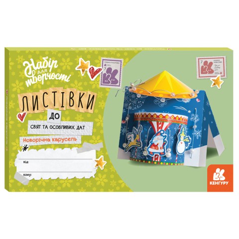 Листівки до свят та особливих дат, Кенгуру, Новорічна карусель (українською) - Святкуйте з листівками "Кенгуру: Новорічна карусель" (українською)! Для дітей від 4 років, ці листівки розвивають творчість через створення святкових привітань. Безпечні і яскраві, ідеальні для новорічних проєктів. Створіть карусель на Demsky.com.ua!