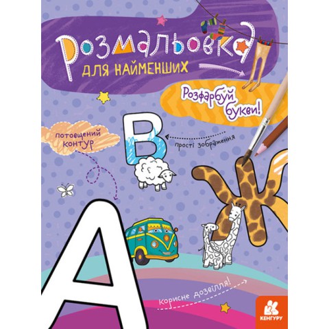 Книга КЕНГУРУ Розмальовка для найменших, Розфарбуй букви (українською)