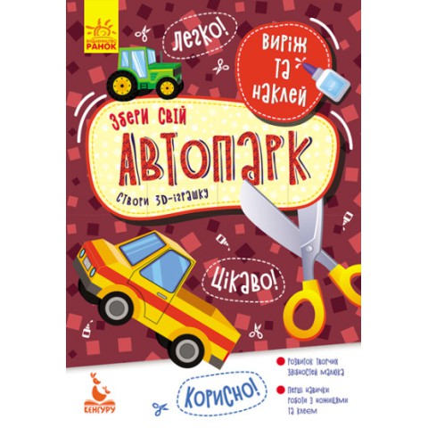 Виріж та наклей, Кенгуру, Збери свій автопарк (українською) - Створюйте автопарк із набором "Кенгуру: Виріж та наклей. Збери свій автопарк" (українською)! Для дітей від 4 років, цей набір розвиває творчість і дрібну моторику через вирізання та наклеювання. Безпечний і яскравий, ідеальний для творчих ігор. Побудуйте автопарк на Demsky.com.ua!