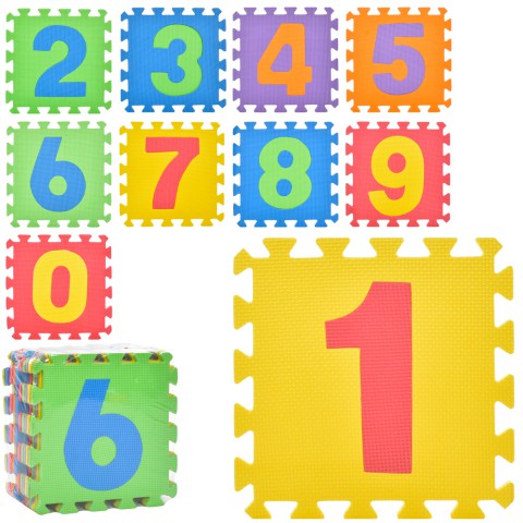 Килимок Мозаїка EVA, цифри, 10 деталей, 30x30 см, пазл, M0375-2 - Вивчайте цифри з килимком-пазлом "Цифри" (10 деталей, 30x30 см, арт. M0375-2)! Для дітей від 1 року, цей EVA-килимок розвиває логіку та математичні навички через складання пазлів. Безпечний і яскравий, ідеальний для малюків. Вчіть цифри на Demsky.com.ua!