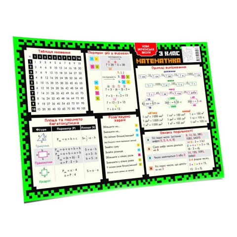 Підкладка-підказка навчальна А3 1/2/3/4 клас - це важлива інформація для учнів, яка вивчається в початковій школі і яку потрібно запам'ятати, а ще - це підказка для батьків, які в тій чи іншій мірі допомагати маленьким учням опанувати шкільну науку . Її можна покласти на стіл, помістити в зручне місце так, щоб можна було тримати перед очима важливу інформацію і легко її в разі потреби знайти. Матова ламінація.