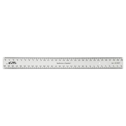 Виготовлена з гнучкого, міцного, первинного прозорого пластику зі шкалою до 30 см включно. Шкала нанесена з обох боків, що робить використання ще зручнішим для правшів і лівшів.