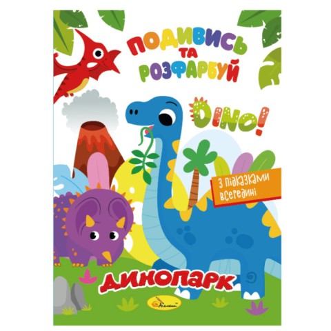 Книжка Розмальовка "Подивись і розфарбуй Динопарк" РМ-44-16 з підказками в середині