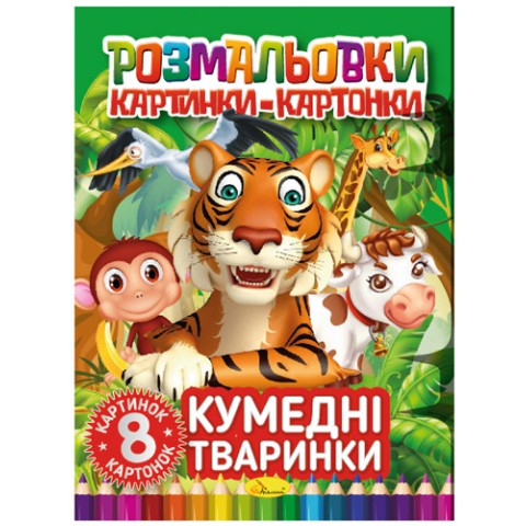 Книга Розмальовки картинки-картонки, Кумедні тваринки (українською)
