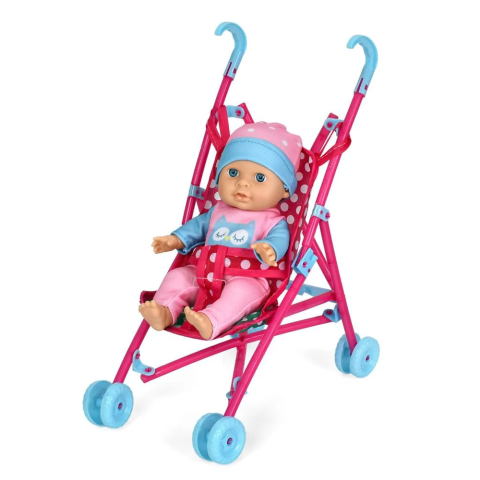 Повноцінний ігровий набір, що включає коляску для ляльки та пупса висотою 20 см. Коляска має реальні функції: складний капот, регульовану ручку, м'яке сидіння. Набір ідеальний для сюжетно-рольових ігор, розвиваючи в дівчаток почуття турботи та відповідальності. Купуйте набір коляска з лялькою для щоденних прогулянок та піклування про улюбленця!