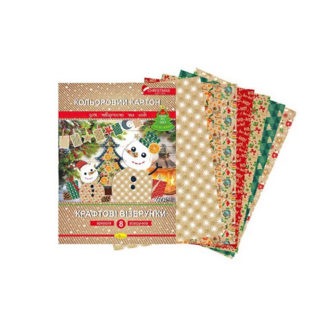 Купіть набір кольорового картону Крафтові візерунки Новорічна серія А4 8 аркушів для свят!