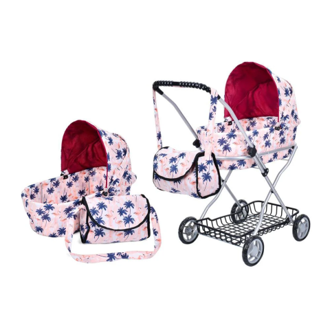 Коляска для ляльки Melogo, металева, 67x63x35 см, кошик, сумка, висота до ручки 66 см, 9325 (В асортименті)