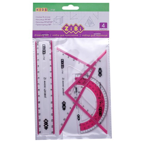 Комплект KIDS Line, лінійка 15 см, 2 косинці, транспортир, з рожевою смужкою