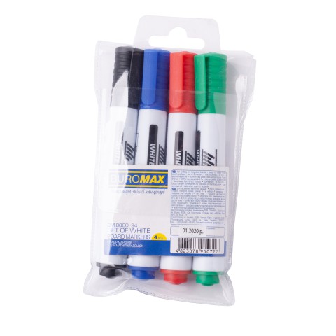 Зручний набір із чотирьох маркерів, призначених для письма на магнітних та білих дошках. Маркери мають яскраві, насичені кольори, які легко стираються сухою губкою або серветкою, не залишаючи слідів. Ідеально підходять для використання в офісі, школі чи вдома. Ергономічний корпус забезпечує комфортне тримання під час письма. Характеристики: Кількість у наборі: 4 шт. Кольори: чорний, синій, червоний, зелений Тип чорнила: на спиртовій основі, швидковисихаючі Призначення: для магнітних та білих дошок Легко стираються без залишків