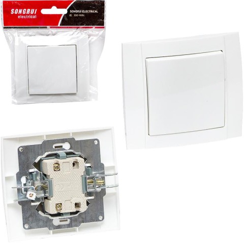 Забезпечте надійне та зручне керування освітленням у вашому приміщенні з класичним одинарним вимикачем. Цей вимикач має стандартний розмір 9×8 см, що ідеально підходить для більшості монтажних коробок та легко вписується у будь-який інтер'єр. Виготовлений з якісного, стійкого до зношування та пожежобезпечного пластику, він гарантує довговічність та надійність у роботі. Одинарний механізм забезпечує вмикання/вимикання одного джерела світла, що є найбільш поширеним рішенням для кімнат та коридорів. Простий та елегантний дизайн робить його універсальним. Обирайте цей якісний одинарний вимикач для забезпечення безпечного та комфортного керування освітленням у вашому домі або офісі.