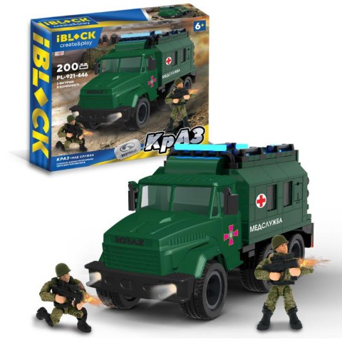 Конструктор IBLOCK Армія КрАЗ Медична служба, PL-921-446, 200 деталей, 2 фігурки, 28.5x6.4x25 см