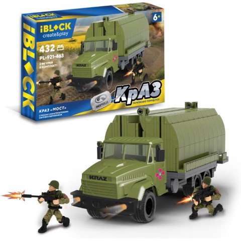 Конструктор IBLOCK Армія КрАЗ Міст, PL-921-463, 432 деталі, 2 фігурки, 38x6.4x28 см