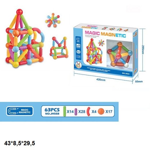 Конструктор магнітний, JH55B, 63 деталі, 43x8.5x29.5 см