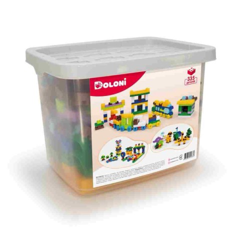 Конструктор "Паркінг/Трек/Залізниця/Динозаври", 335 деталей, у контейнері для зберігання, Фламінго, 013999/01