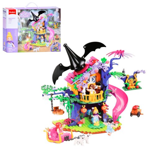Конструктор SLUBAN Рожева серія Будинок чарівниці, 435 деталей, фігурки, тварини, 42.5x33x7 см