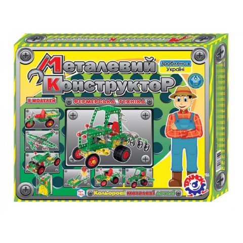 Традиція металевих конструкторів бере свій початок у далекому 18 ст. На цих конструкторів виросло багато поколінь відомих винахідників, механіків і інженерів. Завдяки іграшці хлопці (і дівчата) набувають перші навички з'єднання деталей гвинтами, гайками, роботи викруткою і ключами. Вони власними руками створюють справжні "працюють" моделі: різноманітні автомобілі, вертоліт, кран, трактор, поїзд, позашляховик, танк, мотоцикл і багато іншого техніки.Робота з конструктором:викликає у дітей інтерес до роботи машин і механізмів;дає базові поняття про взаємодію окремих частин;знайомить з технічними назвами деталей, простими кресленнями та схемами;розвиває навички логічного мислення, просторову уяву, уважність і фантазію.Металеві конструктори використовуються на уроках у початковій школі як набори для конструювання з різними способами з'єднання (НУШ). Набирає обертів новітня методика STEM (Science, Technology, Engineering, Mathematics) активно застосовує такі конструктори в освітньому процесі. Наприклад, можна зібрати модель молекули, квітки, вітряка або динозавра. Дитина не просто знайомиться з новими напрямками розвитку точних наук та інженерії, а вчиться реалізовувати вивчене на практиці.Металеві конструктори відрізняються високою якістю і різноманітністю деталей, цікавим поєднанням металевих і пластикових запчастин. У кожному наборі є викрутки і ключі для складання моделей. На допомогу юним механікам – кольорова, детальна покрокова інструкція, яку можна скачати з нашого корпоративного сайту.Крім того, малий винахідник може придумати власні варіанти складання і нові цікаві моделі. Творча робота є основою розвитку креативного мислення дитини.Ігри з конструктором ТехноК принесуть багато користі і будуть цікаві не тільки малюкам, але і дорослим.Металевий конструктор "Фермерська техніка" (253 деталей) з розширеними дизайнерськими можливостями завдяки цікавим різнобарвним пластиковим деталям. В комплекті покрокові кольорові інструкції для складання 8 моделей фермерської техніки. Перевага іграшки - металеві деталі різних кольорів.Упаковка - кольорова коробка.