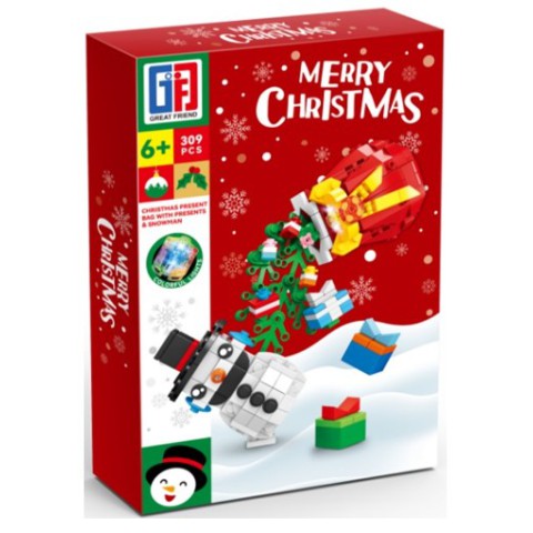 Конструктор Сніговик та мішок з подарунками з 309 деталями – святковий набір для створення новорічної фігури.