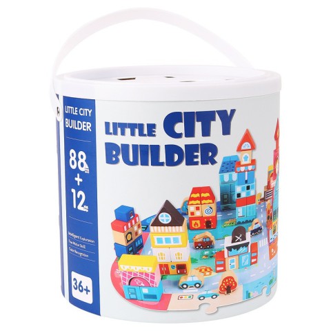 Дерев'яний конструктор "Місто" C 75545, 12 пазлів, 88 деталей