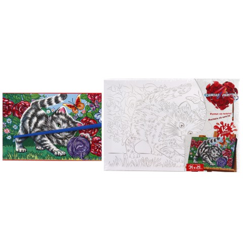 Створіть ніжну та милу картину "Кошеня в квітах" за допомогою набору для розпису на полотні. Цей набір має компактний розмір **21×31 см** і ідеально підходить для початківців або як швидкий творчий проєкт. Комплект включає високоякісне полотно на підрамнику з контурним малюнком, акрилові фарби та пензлики. Розпис на полотні **розвиває художні здібності, посидючість та приносить задоволення від медитативного процесу**.