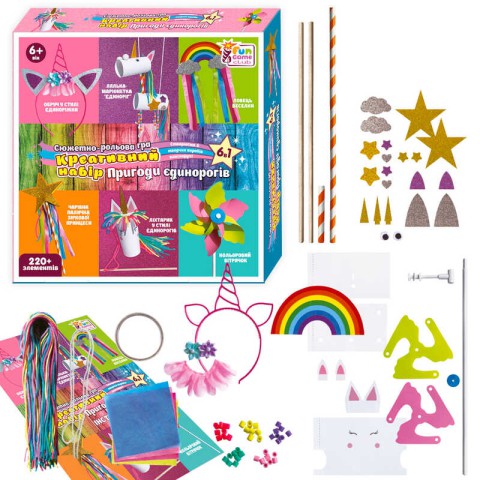 Креативний набір Пригоди єдинорогів 6в1 220+ елементів 37048 Пориньте у чарівний світ творчості з Креативним набором Пригоди єдинорогів 6в1 220+ елементів 37048. Цей великий комплект поєднує в собі 6 різних видів рукоділля та творчих занять на популярну тему єдинорогів, ідеально підходить для розвитку креативності, фантазії та дрібної моторики. Набір включає понад 220 елементів для різноманітних творчих проєктів (можливо, ліплення, малювання, аплікації, створення прикрас), забезпечуючи багато годин захоплюючого дозвілля. Креативний набір єдинорогів 37048 є чудовим подарунком для дівчаток, які люблять рукоділля та казкові мотиви. Купуйте цей креативний набір 6в1 для всебічного розвитку творчих здібностей.