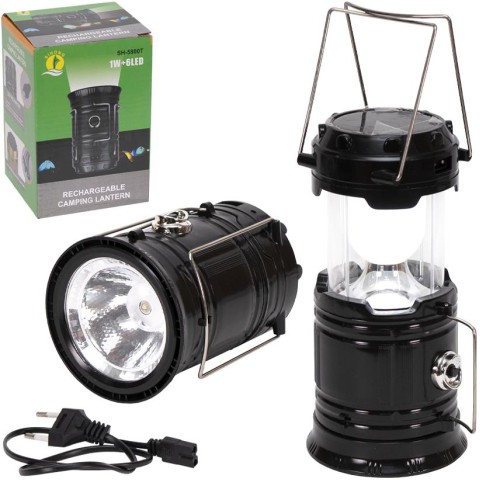 Багатофункціональний кемпінговий ліхтар SH-5800T. Заряджається від сонячної батареї та має функцію PowerBank. Незамінний у походах.