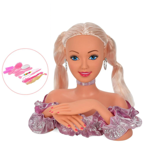 Лялька DEFA голова для зачісок гребінець аксесуари 20957 – манекен-голова ляльки з довгим волоссям для експериментів із зачісками. Гребінець та аксесуари в комплекті.
