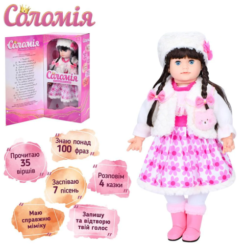Лялька Соломія, 56 см (українською) звук, 100 фраз, M5748IUA - Пориньте у казковий світ із інтерактивною лялькою Соломія (56 см, M5748IUA)! Вона говорить 100 фраз українською, надихаючи на творчі ігри та розвиток мовлення. Безпечна, на батарейках. Замовляйте на Demsky.com.ua!