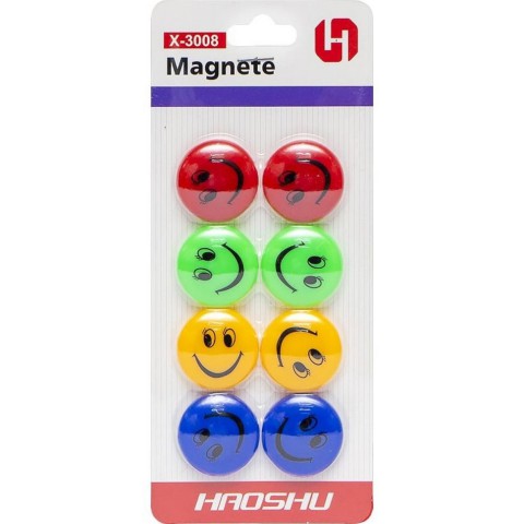 Магніт для дошки "Смайлик". Діаметр магніту: 3 см. На блістері 8 штук розмір 18*8 см.